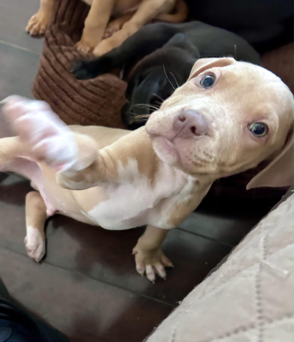 I am about 9 weeks old and am already over 13 pounds, so I will probably be a good-sized boy. But I am gentle and am extremely food motivated and learn fast. I working on potty training. But I got the sleeping thing down. All this cuteness is exhausting, and I sleep well all night in a penned in area. If you need a fun and hunky boy in your life, I’m your guy! Put in an application for me!