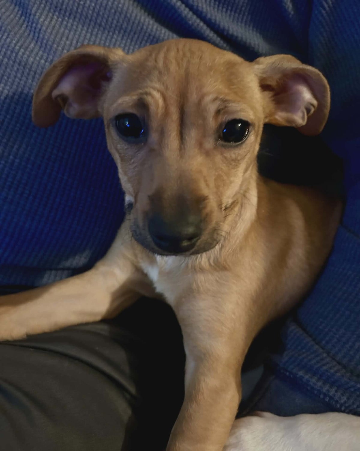 Minnie looks to her humans for reassurance and comfort and is happiest when she’s snuggled up in cozy blankets or curled in close with someone she trusts. She’s soft, loving, and full of quiet sweetness.