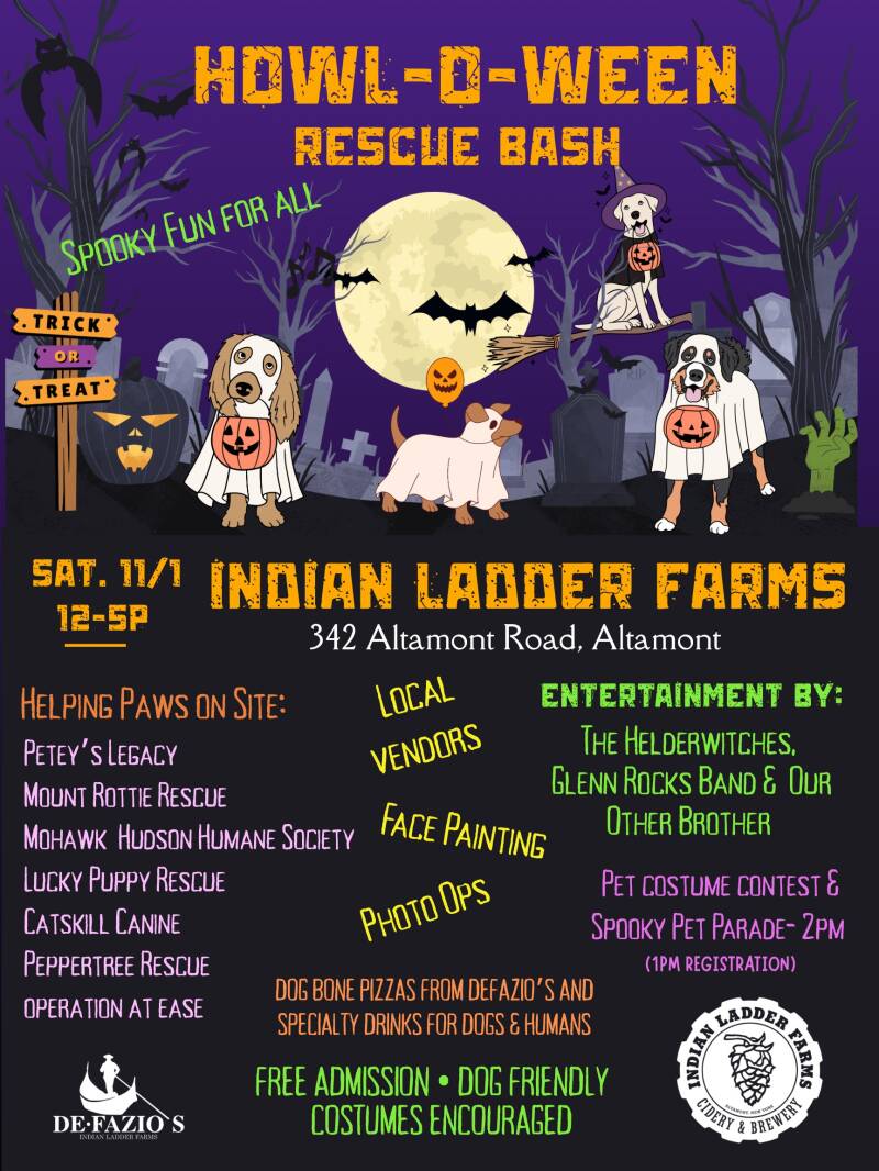 Get your costumes ready… it’s almost time for the Howl-O-Ween Rescue Bash at Indian Ladder Farms! 🐾✨