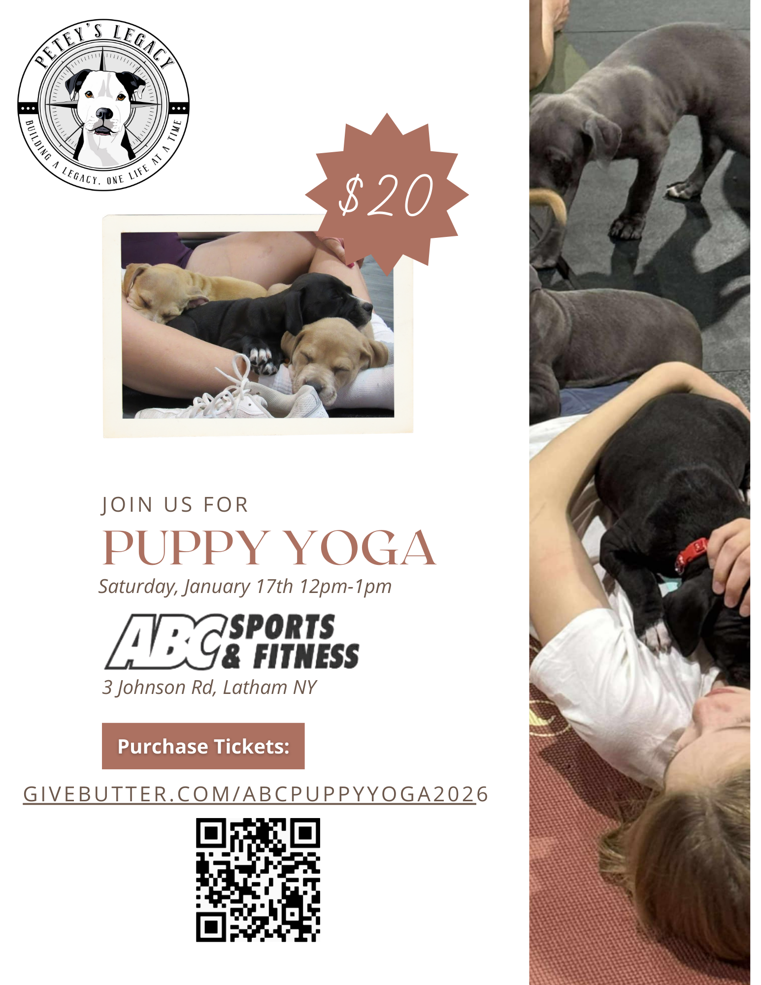 🎟️Tickets are purchased here: https://givebutter.com/abcpuppyyoga2026